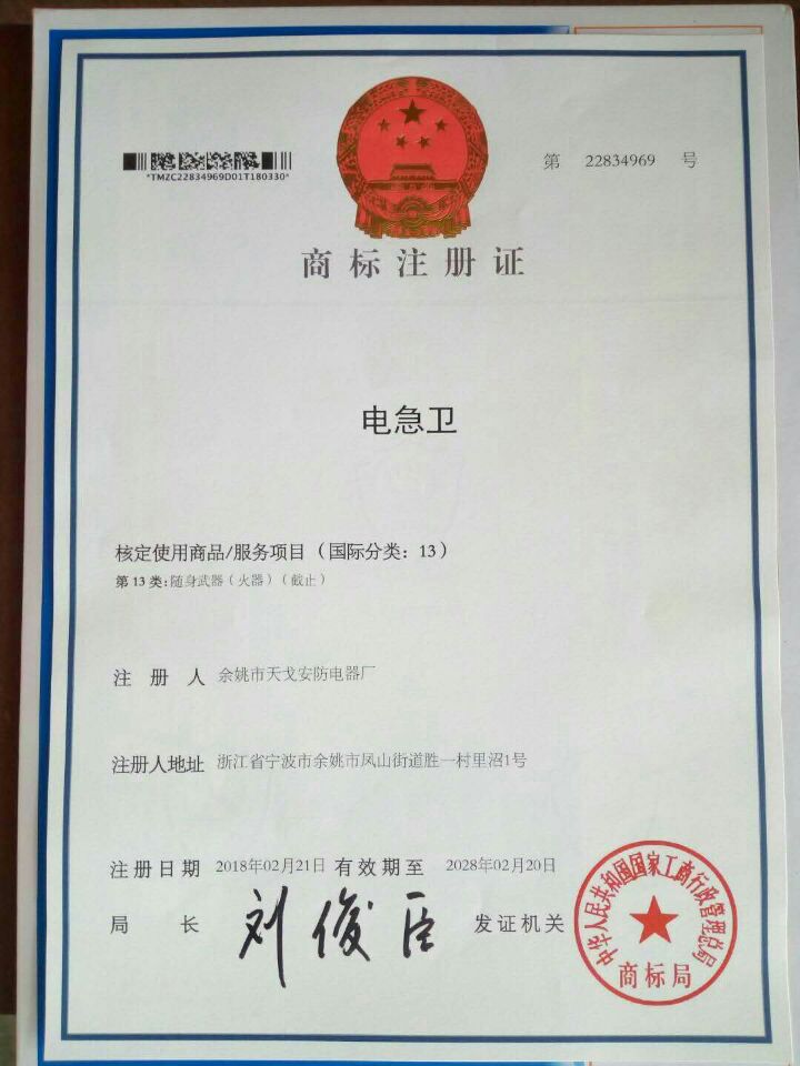 余姚市天戈安防電器廠:為全國(guó)首家,警用工頻遠(yuǎn)程電擊器:電擊水槍系列產(chǎn)品生產(chǎn)銷(xiāo)售商,注冊(cè)于2013年10月。 工頻高壓遠(yuǎn)程電擊器:中國(guó)首創(chuàng),用于處置不及用槍的突發(fā)事件,如公安巡邏,公務(wù)執(zhí)法,安保押運(yùn),臨管警戒,金樓,銀行,珠寶店防搶自衛(wèi),獸類(lèi)動(dòng)物馴養(yǎng),應(yīng)對(duì)持刀械歹徒,威猛強(qiáng)悍。天戈安防電器廠成立幾年來(lái)我廠以電子防暴制暴為先導(dǎo),科技強(qiáng)警為己任,致力于單警防身安保產(chǎn)品研發(fā)制造,電子防暴警安示范,培訓(xùn)為一體的專(zhuān)業(yè)廠家,產(chǎn)品獲國(guó)家警用專(zhuān)利,證號(hào)為:ZL201220096374.4經(jīng)過(guò)孜孜不倦的努力,積累了豐富生產(chǎn)、安裝和售后服務(wù)經(jīng)驗(yàn)。 公司尊崇“踏實(shí)、拼搏、責(zé)任的企業(yè)精神,并以誠(chéng)信、共贏、開(kāi)創(chuàng)經(jīng)營(yíng)理念,創(chuàng)造良好的企業(yè)環(huán)境,以全新的管理模式,完善的技術(shù),周到的服務(wù),卓越的品質(zhì)為生存根本,我們始終堅(jiān)持用戶至上 用心服務(wù)于客戶,堅(jiān)持用自己的服務(wù)去打動(dòng)客戶。如果對(duì)我們的產(chǎn)品感興趣或者有任何的疑問(wèn),您可以直接給我們留言或直接與我們聯(lián)系,我們將在收到您的信息后,將會(huì)第一時(shí)間及時(shí)與您聯(lián)絡(luò)。 |